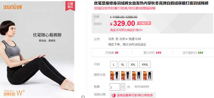 这么好的鹅绒裤,官方原价还是一如既往的贵:329元 。