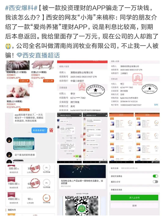 2013年的“爱尚养猪”APP,由经营生猪养殖的渭南尚润牧业有限公司注册,以“生猪代养殖、销售服务”的名义,吸引群众投资认养生猪并支付对应的养殖、销售成本与服务费,采取微信朋友圈宣传及召开会议、邀请投资人到养猪场等地参观的方式,向公众宣传生猪代养殖、销售服务。