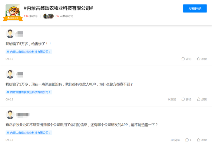 与李女士一样,在“鑫岳牧业”APP上被骗的不在少数。