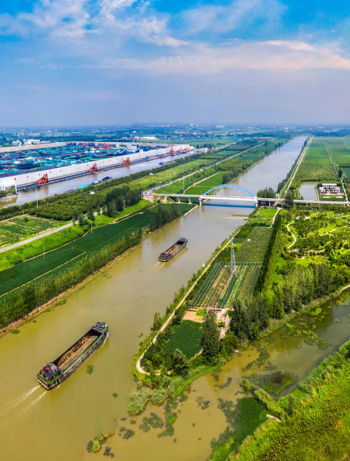 ▲ 江苏徐州,大运河注入微山湖处的亿吨大港作业区。摄影/郑舟