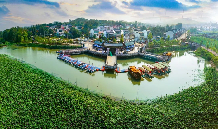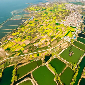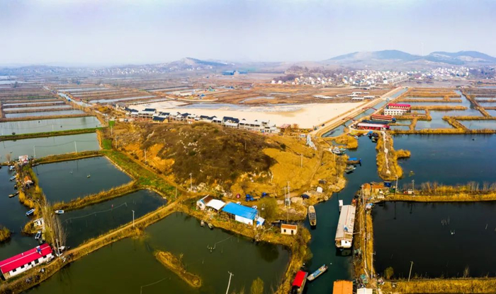 ▲ 航拍微山湖东岸的微山县马庄村。摄影/王新伟