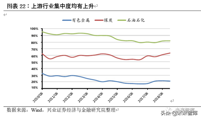 在上中游原材料、中游制造业、下游消费业及金融业范围内,多行业呈现出集中度持续提高的趋势。
