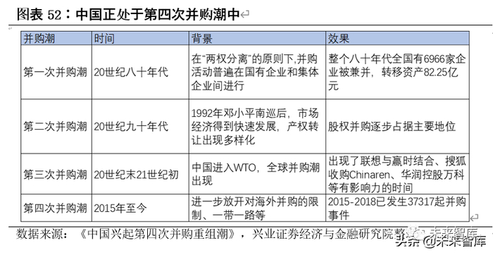 根据海外经验,并购重组将成为 A 股市场集中度提升的重要方式。与海外相比,A 股市场并购重组历史较短。全球在 19 世纪末 20 世纪初、20 世纪 20 年代、20世纪 60 年代、20 世纪 70-80 年代、20 世纪 90 年代分别发生了五次并购潮,范围遍及美国、日本、德国、英国等海外发达国家。其中,美国更是以引领者的身份, 在五次并购潮中发起了超过 10 万起并购,因而美股出现多个行业集中度上行。反观中国,改革开放以后,企业才开始在政府的指导下进行并购,并购进程较短, 对行业集中度的提升效果也相应受限。