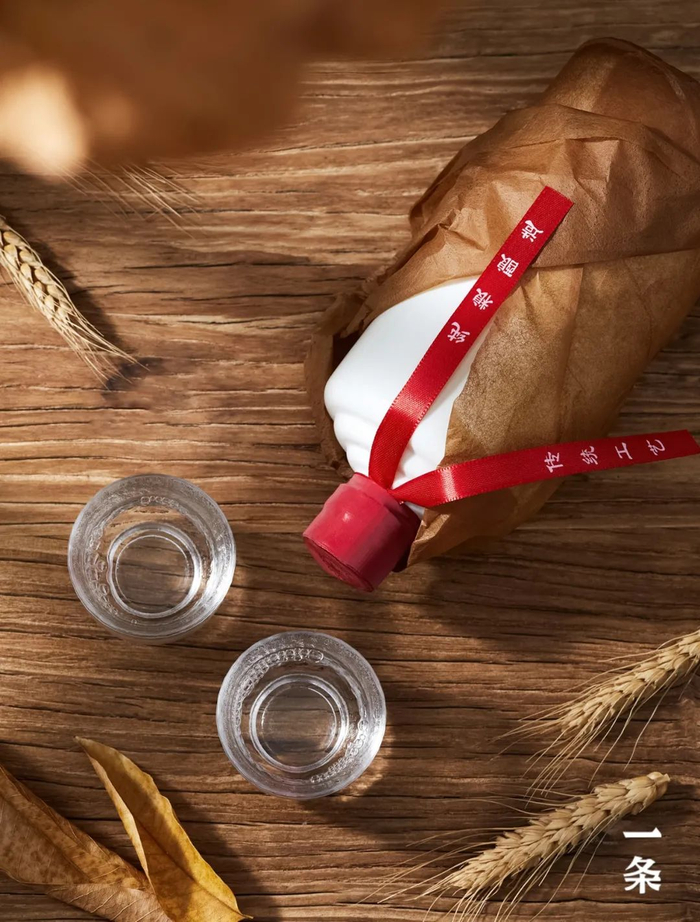 瓶口搭配中国红的封口飘带,红白搭配,喜庆又大气。