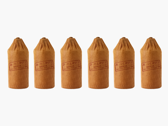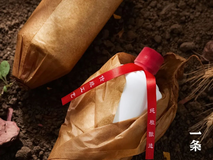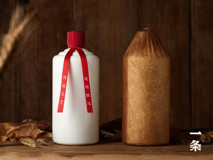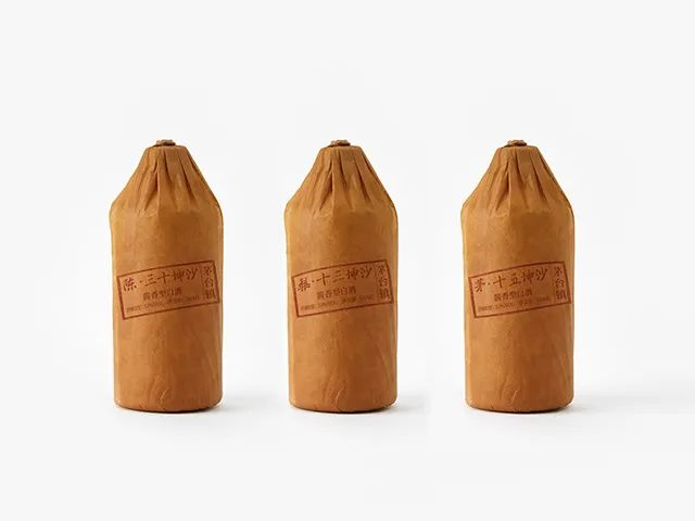 瓶身裹上茅台镇当地常用的牛皮纸包装,朴素优雅,还十分环保。