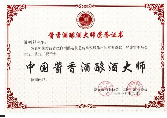 梁明锋是季克良师傅的嫡传弟子,在季师傅的指导下,他完整掌握了酱香酒酿造与勾调的传统工艺技术。