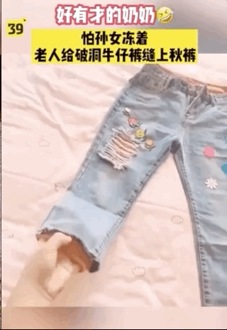 奶奶缝补后的破洞牛仔裤,网友直呼想要
