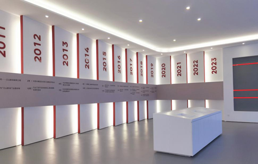 整个展厅由企业文化、品牌文化、木与门文化组成,通过图文、影片等形式重温了欧派自强不息的发愤图强之路,铭记了各级领导对欧派的关怀与期望,展示了欧派多年的辉煌成就,荟萃了华夏文化、党建文化在欧派的实践与思考,也描绘了未来发展的美好蓝图。