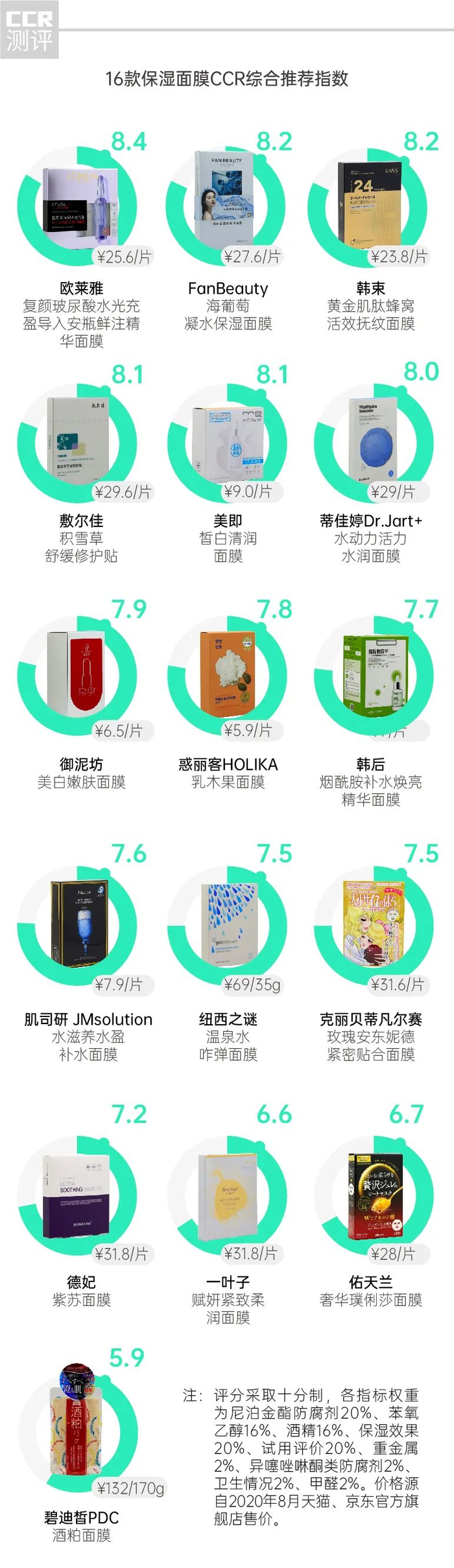 16款面膜对比测评:佑天兰、韩后等8款含多种刺激性成分,一叶子、德妃补水一般