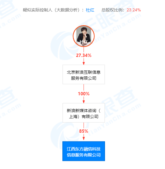 疑似实际控制人为新浪首席运营官兼总裁杜红。