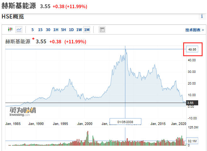 赫斯基能源也曾辉煌过。2008年时其股价一度高达49.86加元,相比现在的3.55加元,12年间跌幅超90%。