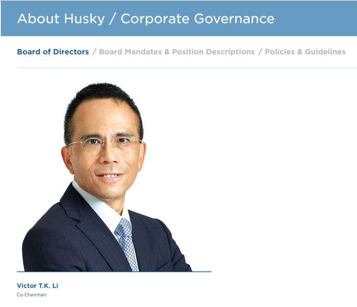 据了解,赫斯基能源是一家总部位于加拿大的综合能源公司,其普通股在多伦多证券交易所公开交易,代码为HSE。赫斯基能源官网显示,目前,李嘉诚长子李泽钜为董事会联合主席: