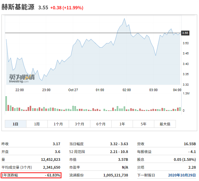 同时,在消息出台后,赫斯基能源股价也上涨11.99%。