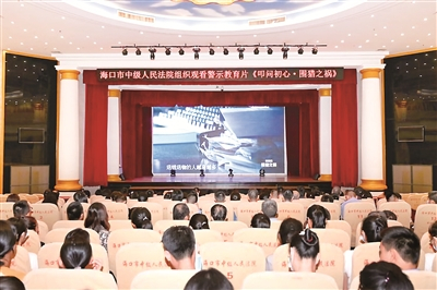 各地在坚持受贿行贿一起查、破除权钱交易关系网的同时,积极利用查处的党员干部被“围猎”典型案例开展警示教育,推动党员干部筑牢拒腐防变思想防线。图为海南省海口市中级人民法院组织全体干警观看廉政警示教育片《叩问初心·围猎之祸》。(资料图片)