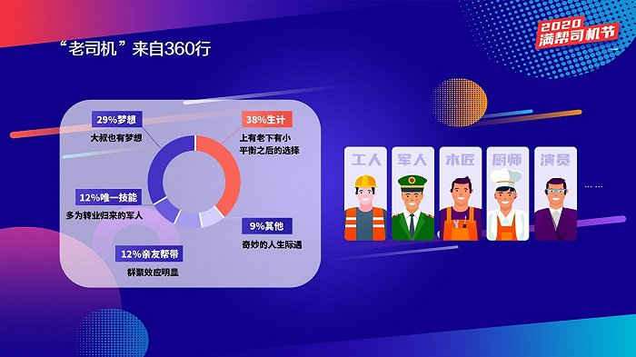 在司机群体中,并不是每个人都像夏双可一样从小就确定自己要开卡车。数据显示,只有34%的人在从业之初就选择了开卡车,高达66%的卡车司机由其他行业转行而来,不少人来自工人、军人、厨师等行业。满帮集团副总裁谭远江认为,类似满帮等平台型企业有较强的包容性,同时货运行业门槛相对不高,给需要转行的人提供了可能的就业机会。