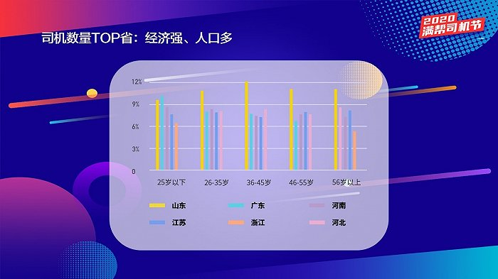 从年龄段来看,目前卡车司机平均年龄37岁,其中45岁以下司机占主力,占到总体司机的80%。而在新司机中,年轻身影越来越多,25岁以下的比例相较于整体提升了3.54个百分点,26岁至35岁区间提升了近4个百分点。
