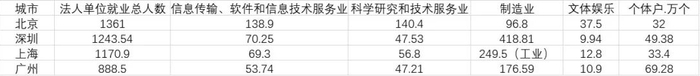 根据第四次全国经济普查的数据,四大一线城市中,广州在互联网领域(信息传输、软件和信息技术服务业)的就业人员为53.74万人,仅为北京的38.7%,也远远低于上海和深圳;在科技研究和技术服务方面,广州的从业人员虽然与深圳差距很小,但是广州是我国重要的科教中心,有相当一部分研发人员来自高校和科研院所,而深圳的科技研发则主要是以企业为主体。