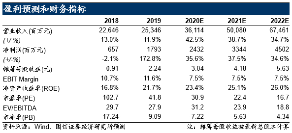 公司所处的非洲以及新兴市场人口红利明显,且正处于功能机向智能手机切换的黄金时间,我们看好公司在海外市场的持续发展,预计2020-2022净利润24.3/33.4/45.0亿元,当前股价对应PE=30.9/22.4/16.7x。我们看好公司凭借市占率优势正在发展成为综合硬件+OS平台+独立APP+IoT的电子信息生态平台企业,对公司维持“买入”评级。