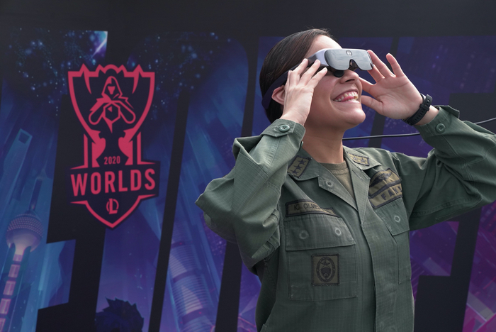 杭州AR公司Rokid原创研发的Rokid Vision设备让电竞迷第一次通过AR眼镜观看英雄联盟总决赛,通过Rokid Vision精准的语音识别能力,当玩家喊出S10总决赛的主题“所向无前”时,可以触发总决赛的直播画面,为玩家展现战队现场比赛的盛况。