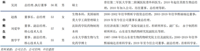 创始人方面,1)爱美客董事长简军现年57岁,1985年参加工作,先后就职于中国粮油食品进出口总公司、美国Bestrend Int’l Inc.、巴拿马Abatecedora Textil S.A.等,2004年起就职于爱美客;2)华熙生物董事长赵燕现年53岁,2000-2002年任华熙昕宇投资总经理;2003-2019年任华熙福瑞达董事;2019年至今任公司董事长兼总经理;3)昊海生科董事长侯永泰现年59岁,曾任美国密西根大学细胞和发育生物学系研究调查员,中科院上海药物研究所博士生导师,上海华源生命科学研究总经理,2009年加入公司,历任董事长、主席等职。