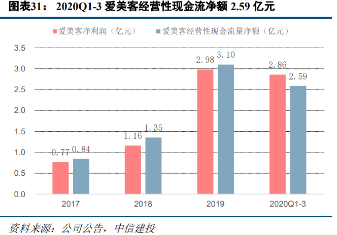 营收快速增长下,公司费率呈持续下降趋势。2020Q1-3公司销售费用率9.0%,较去年同期减少2.6个百分点;管理费用率5.7%,较去年同期减少3.3个百分点;研发、财务费用率分别为7.1%、-0.3%,较去年同期分别变化-0.7、-0.02个百分点。2020Q1-3公司经营性现金流量净额2.59亿元,同增20.3%;净利润2.86亿元,同增33.2%。