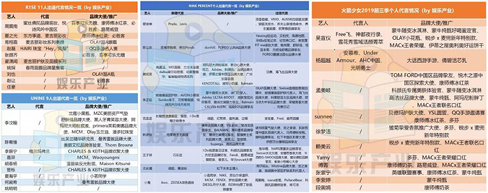 (R1SE、UNINE、NINE PERCEN、火箭少女101 出道代言一览 by娱乐产业)