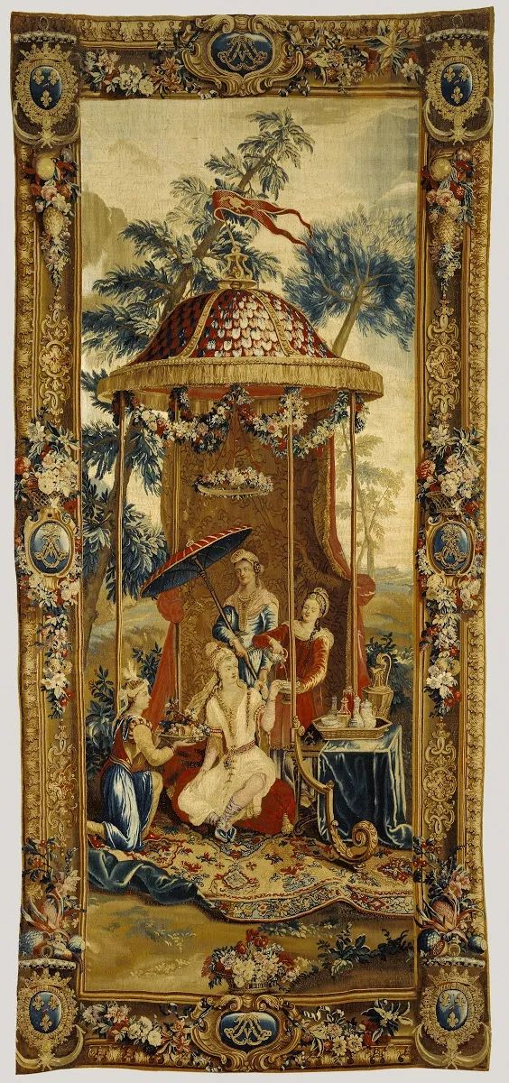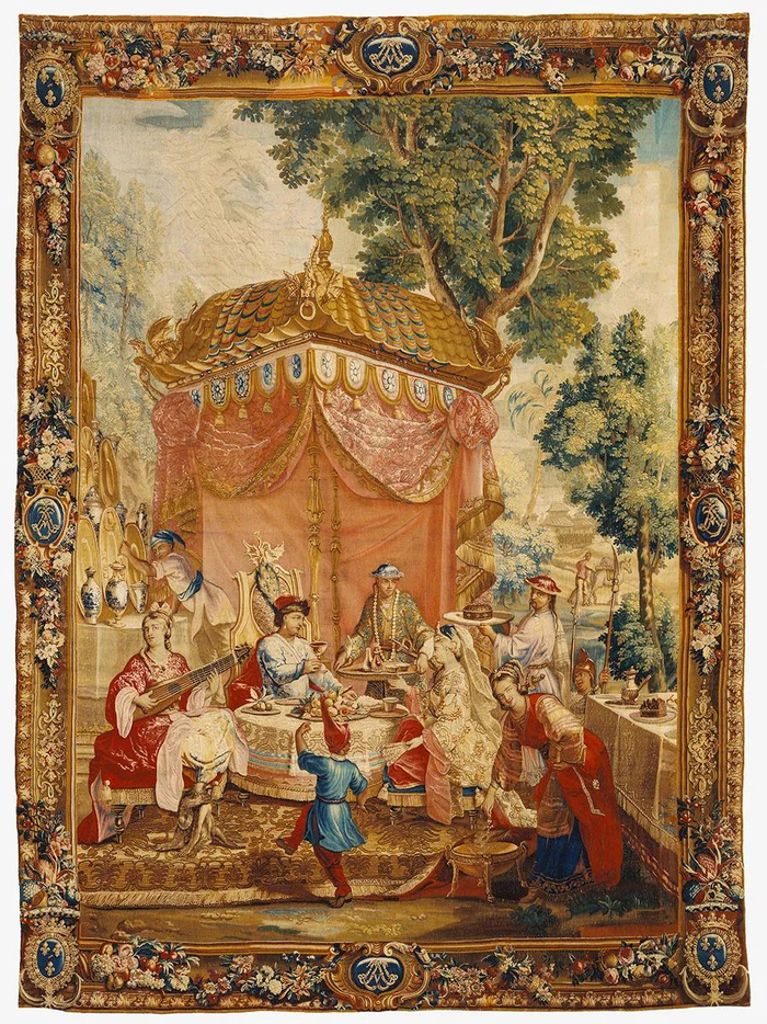 最早试图呈现中国场景的一批作品,是路易十四的博韦皇家手工作坊(Manufacyure Royale des Beauvais)制作的一系列“中国皇帝”壁毯。第一批壁毯诞生于17、18世纪之交,也正是路易十四举办“中国皇帝”舞会前后。