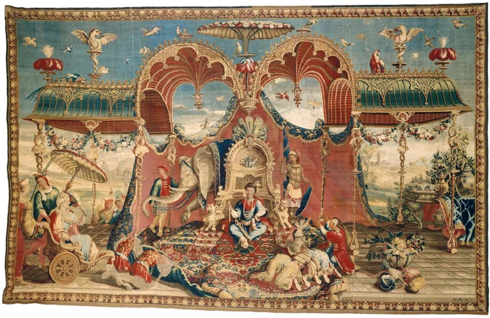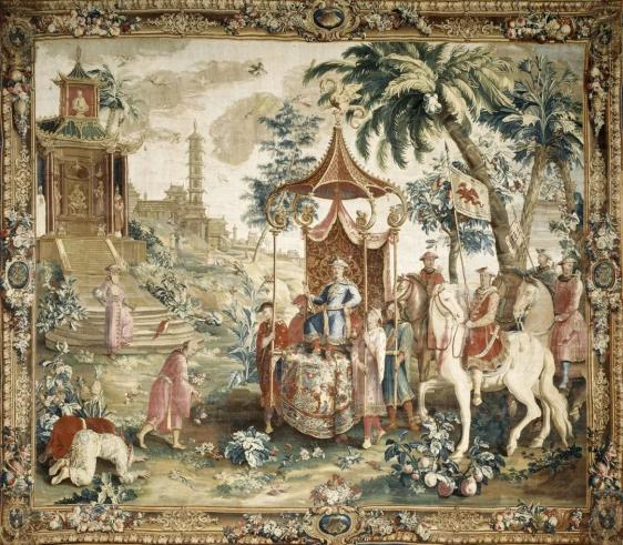 17世纪末-18世纪初法国制作的挂毯 《(中国)皇帝的旅行》 是有那么点意思了