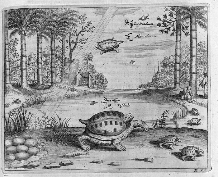 上面这幅插图十分经典,重点不在于他的龟画得怎么样或是用心地配上了中国字——重点在于插图背景上的植物。