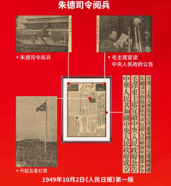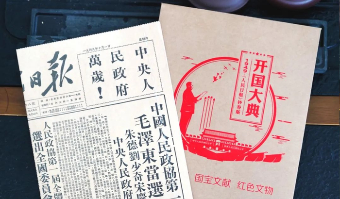 报纸上再现了1949年开国大典的宏伟壮观,是唯一一个最权威、最详实、最完整的国宝文献、开国档案。
