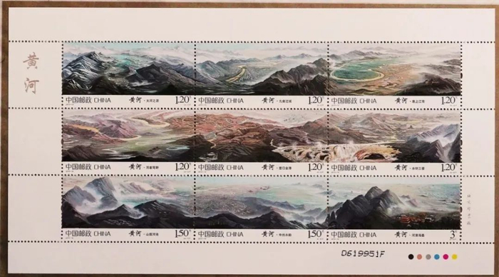 《黄河》特种邮票采用油画的形式,以散点式的构图创作而成,全景呈现黄河流域的自然生态和历史人文景观,展示出黄河的磅礴气势和深厚底蕴。