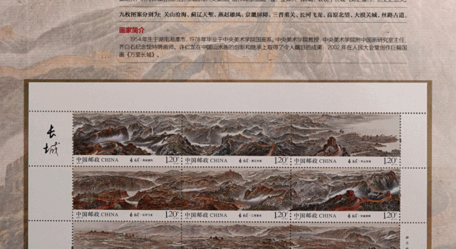 《长城》邮票揽长城四季的绚丽多姿、秀美雄强于一票之中,是邮票中的经典。画家以“骨法用笔”的中国画手法,展现了长城风骨,彰显出大国风范,达到了长城邮票“很中国”的效果。