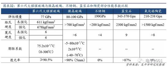 特别是在抗摔落能力方面,微晶玻璃远强于普通玻璃。固体的抗摔落能力一般与其延展性相关,而其延展性在微观层面的表现则是是否具备规则排列的晶格,举例而言,正常情况下,金属属于晶体材料,其内部存在排列整齐的晶格形状,在受到外力冲击时,晶格之间会率先展现滑移现象,宏观层面的展现便是物体塑性形变,只有当外力足够强时,晶格滑移无法完全抵消外力,只能通过脆性断裂释放能量,宏观层面看则是发生断裂现象,而在特殊情况下制备的非晶态金属材料,因为其内部多为非晶结构,几无晶格滑移,因此显得更为脆弱易碎。从这一理解出发,微晶玻璃的制备是先通过特殊处理使得普通玻璃析出微小晶相,然后在一定温度下使之长大,最终的成品是非晶体和晶体的结合体,晶体结构的存在,使得微晶玻璃在抗摔落性能上优于普通的玻璃因此,微晶玻璃有望成为当前智能手机领域最为普及的高性能盖板玻璃的升级版本。