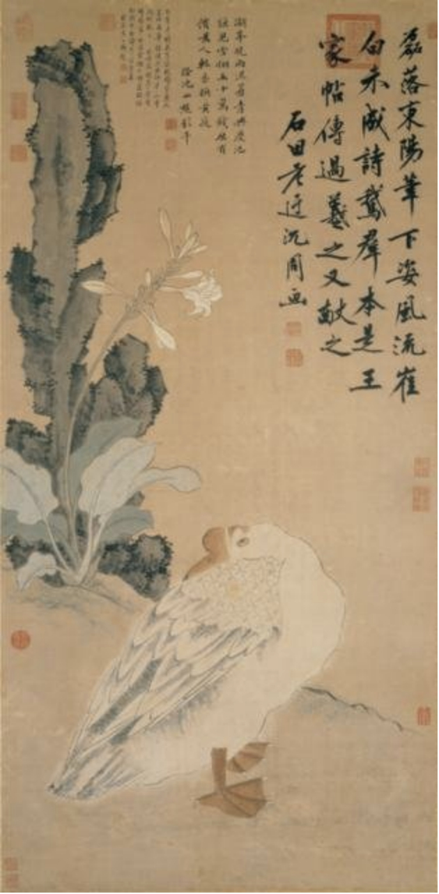 明沈周《花下睡鹅轴》藏于台北故宫博物馆