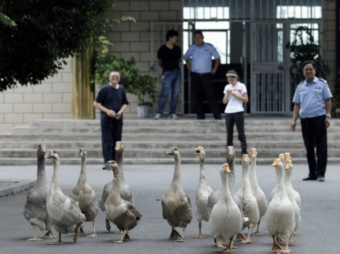 也不只有西方人注意到鹅的可用性,新疆沙湾的警察局也养了一群“警鹅”来防贼。农村养鹅抓老鼠也是对其警戒性的一种利用(虽然没能防住鹅对各种小朋友和大朋友的追赶袭击)。