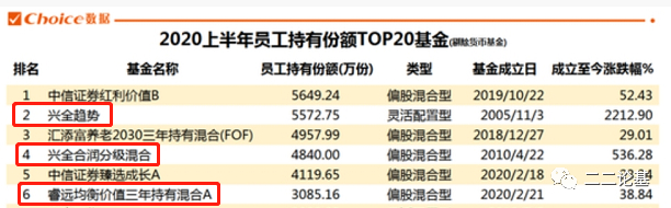 谢治宇老师不仅是二二的最爱之一,也是兴全基金员工的最爱。截至2020上半年,兴全员工持有兴全合润4840万份,总市值8206.22万元,员工持有兴全趋势5572.75万份,总市值4993.74万元。