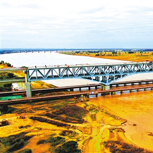 施工中的郑济铁路郑州黄河特大桥。 新华社记者 朱 祥摄