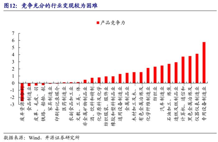 就行业来讲,如果以这个方法去衡量行业及产品的竞争力的话,废弃资源综合利用业、食品制造、交通运输设备、家具制造、印刷和记录媒介复制、医药制造及食品农副产品加工业在存货变现上可能相对于其他行业来说略为困难,原因可能是这些行业更偏近下游,竞争更充分。