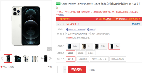 苹果iPhone12Pro需加价1400元,官方起售价8499元