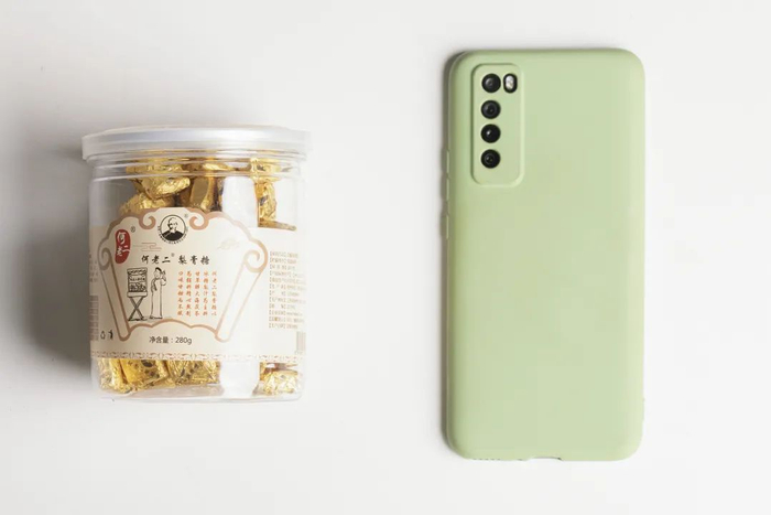 何老二梨膏糖分罐装和铁盒装,铁盒装小巧精致,比我们用的手机还要小上许多。