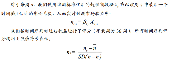 我们将每周的定价误差(weekly mispricings)定义为市场收益率与我们实时预测收益率之间的偏差,半衰期设定为36周。