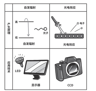 重点要说的是LED。由于是半导体材料,其导电的电子的能级被“电子—空穴对”限制得比较窄,甚至接近原子能级的宽度,因此可以发出单色性非常好的自发辐射。LED省电、发热小,成本远远低于激光,在不要求光准直性的情况下比激光更有优势。因此,LED逐渐淘汰了传统的灯泡和日光灯,成为了目前人们所使用的主要光源。