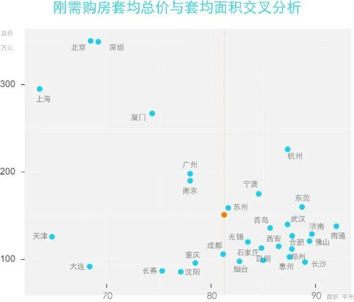 与之相反,北上广深、厦门和南京,属于典型的“小面积-高价格”类型,受到供需关系等因素影响,刚需群体上车难度较大,且在居住体验方面也有待提高。