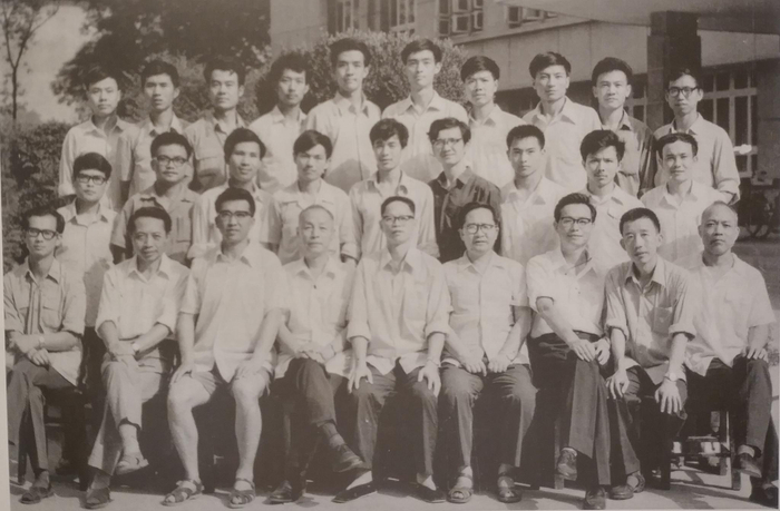 1982年,四川大学考古学专业78级毕业生与教师合影(第一排右起依次为宋治民先生、王子岗先生、童恩正先生、林向先生、张勋燎先生、成恩元先生、马继贤先生、李克林先生)