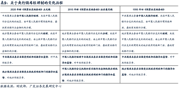 经过六年修订,实施条例正式稿最终修改了相关表述,保留了央行与央行分支机构对中央国库与地方国库的经理制,延续了目前央行与财政部的平行合作关系。
