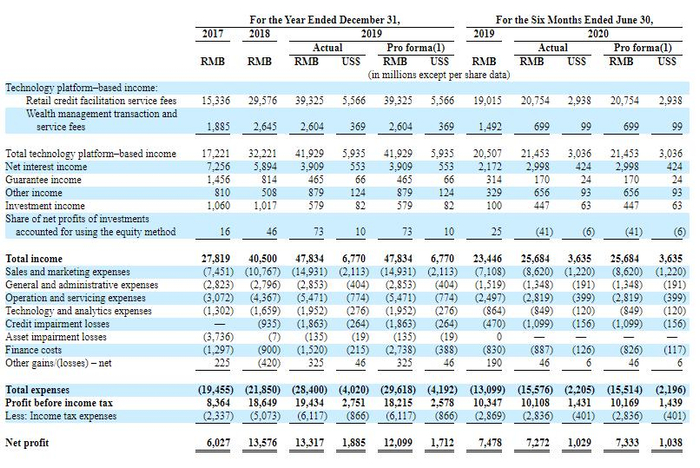 最后要说的是,根据招股书陆金所发行市值300亿美元左右,按照2019年净利润21.8亿美元计算,陆金所发行市盈率接近14倍。对比美股对类似金融科技的估值大多数都在4到5倍左右的市盈率,显然陆金所还是非常严重高估的。但蚂蚁集团4000亿美元的估值可能会对整体行业产生利好,也必将给予陆金所较好的价值重估空间。
