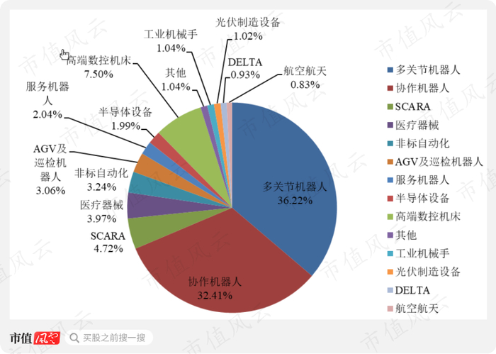 占比最小的产品类别为机电一体化执行器,仅为2%左右。