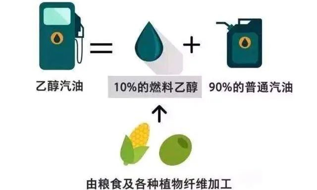 乙醇汽油是按照我国的标准用90%的普通汽油和10%的燃料乙醇调和而成。它与普通汽油一样也分为多种不同型号,只不过在前面加上了一个字母,分别为E89号、E92号、E95号和E98号。
