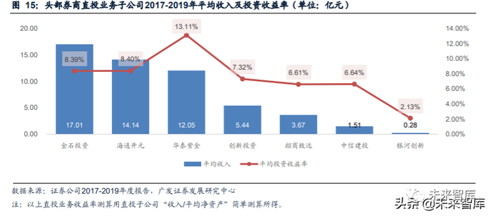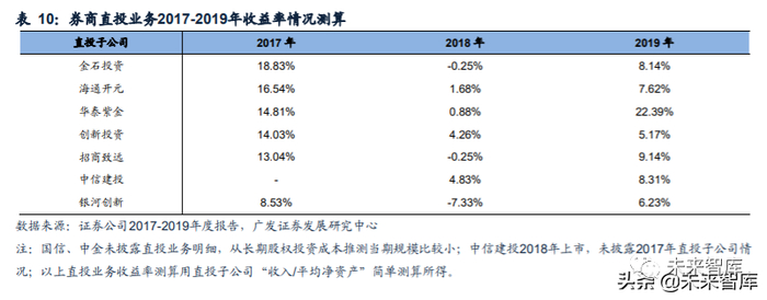 (2)直投业务:受市场影响波动性较大,中信、海通、华泰收益率较高