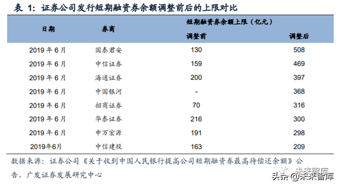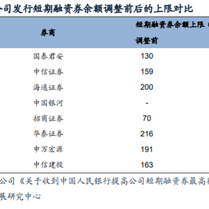 1.头部券商短期融资券余额上限提升